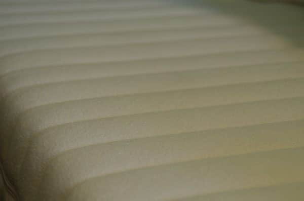 Es handelt sich bei den Bezügen immer um synthetische Stoffe, da diese für den Verwendungszweck optimiert wurden. Besonders feiner gewebte Stoffe bevorzugen wir für diese Schlafsofas. Grobe Strukturstoffe können schnell Gebrauchsspuren aufweisen, denn beim Aufklappen berührt die Rückenlehne die Sitzfläche. Die Frage nach strapazierfähigen Stoffen wird uns eigentlich immer gestellt, aber was bedeutet strapazierfähig? Jeder Stoff verändert sich, immer auf eine andere Art und Weise. Dies bedeutet keinen Qualitätsunterschied, sondern einfach ein andere Verhalten. Zu einer Wellenbildung wird es immer kommen. Beim Hinsetzen wird die Polsterung nach unten gedehnt und damit auch der Stoff. Durch den Einfluss von Körpergewicht und –wärme entstehen dann Wellen. Hier wird auch von einer legeren Polsterung gesprochen.